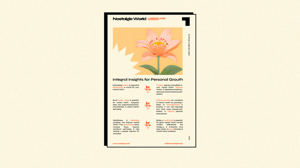 Discover new perspectives with Nostalgie World's 'Integral Insights for Personal Growth' as a digital artwork. This high-resolution image is more than just a piece of digital art; it's a touchstone for introspection, learning, and mental health awareness. Each insight, drawn from a diverse range of curated mental health narratives, offers a unique viewpoint, encouraging understanding and personal growth.